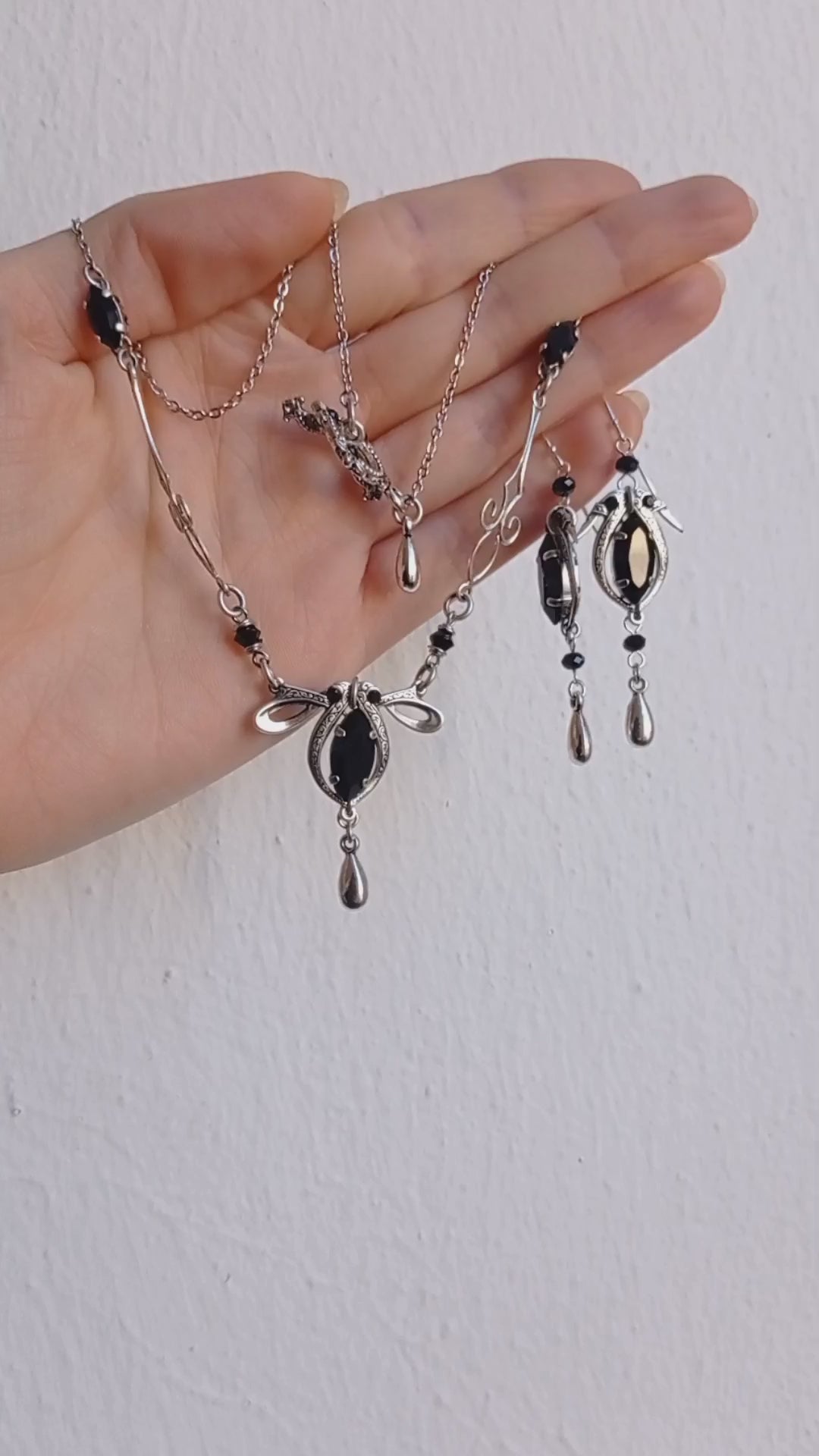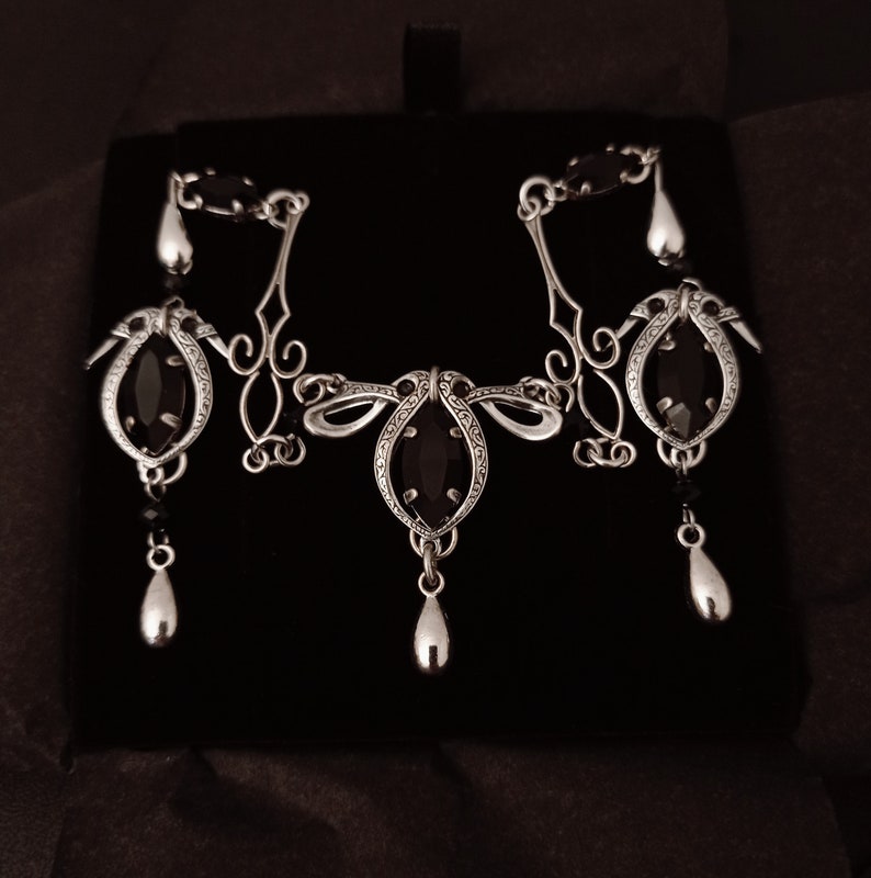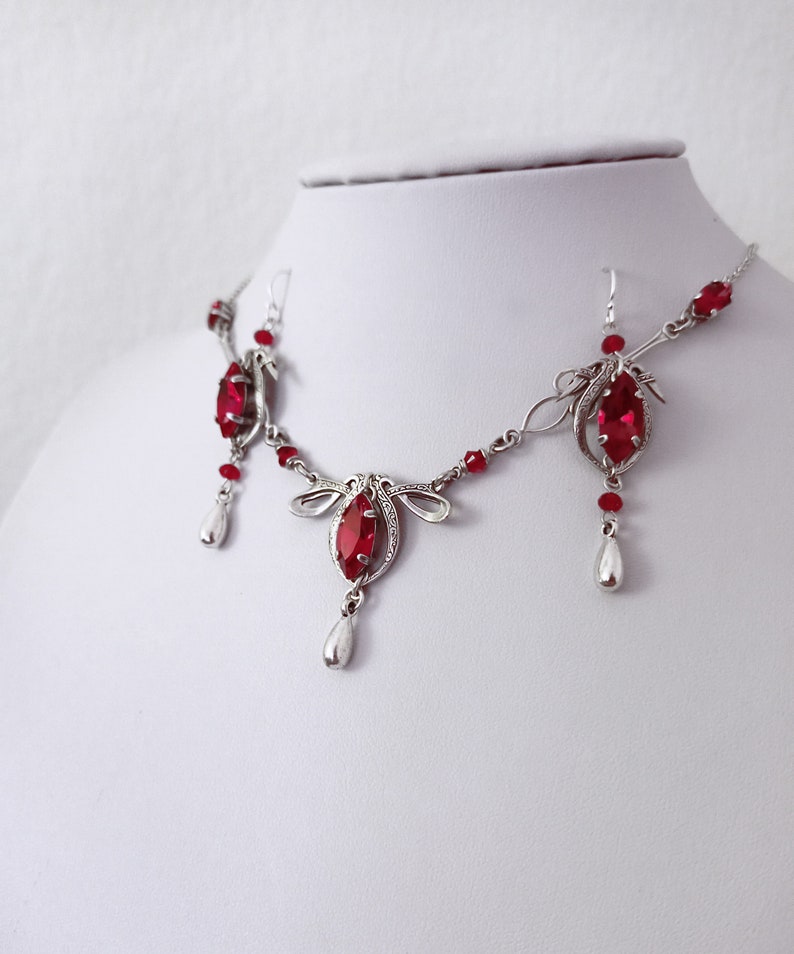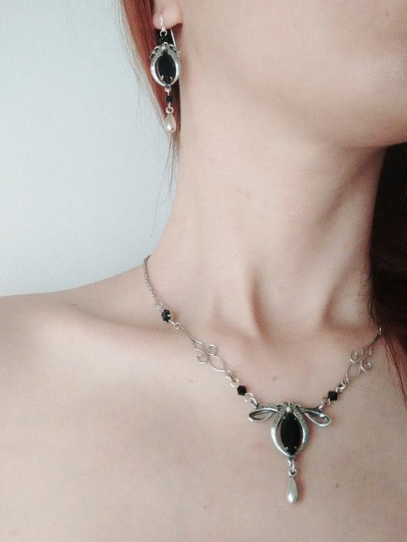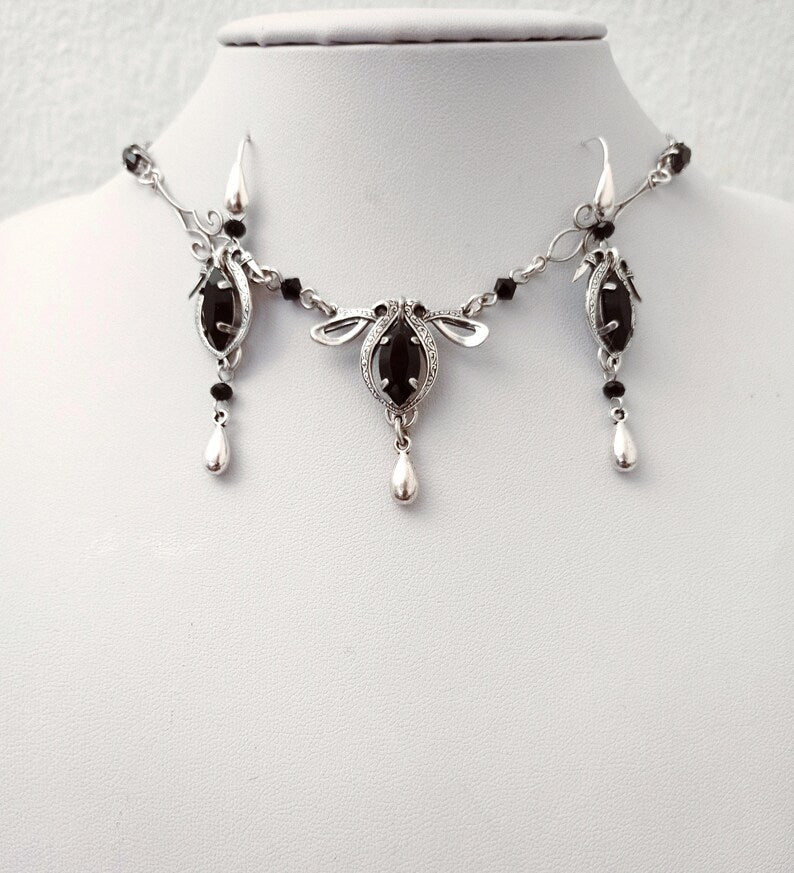 This victorian jewelry set can be made in black or red, or different colours upon request!
