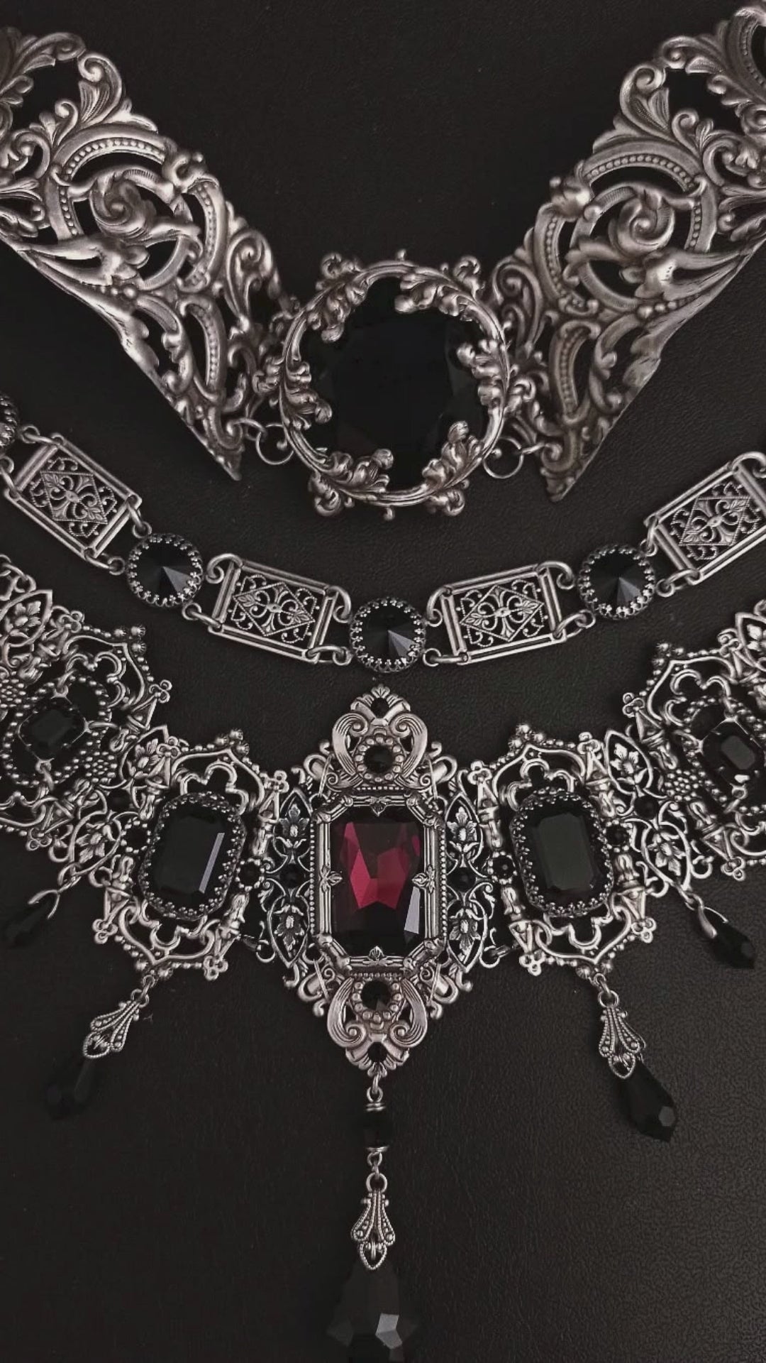 Victorian Gothic chokers, in Silver and Brass with gemstones, pearls and Swarovski Crystal....