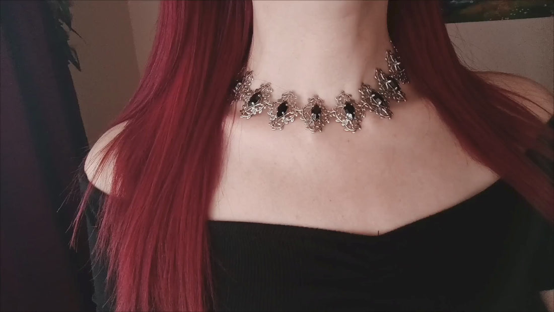 Vintage Gothic necklaces, elegant and bold, with gemstones and Swarovski crystals. Make...
