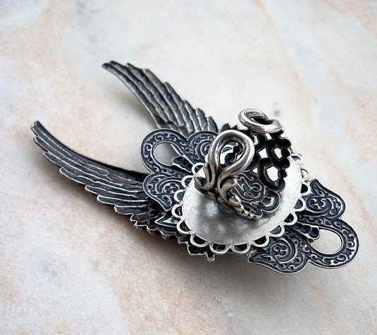 Angel Wings Pendant with Purple Amethyst Glass