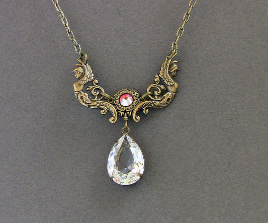 Vintage Brass Necklace with Swarovski Crystal