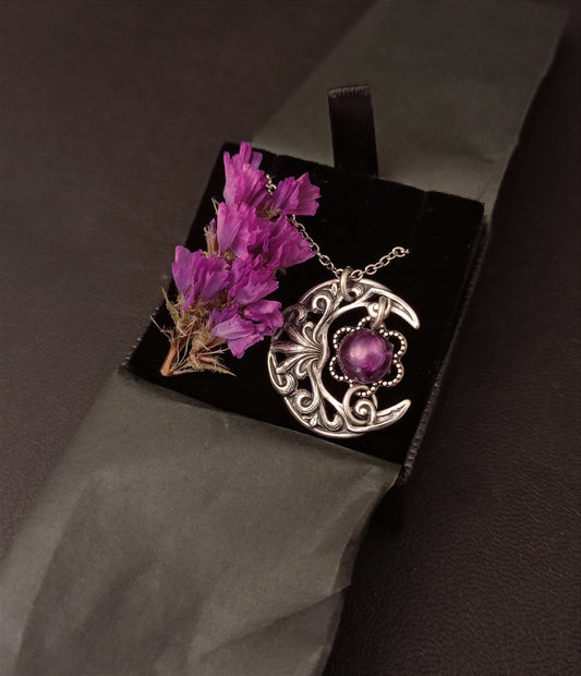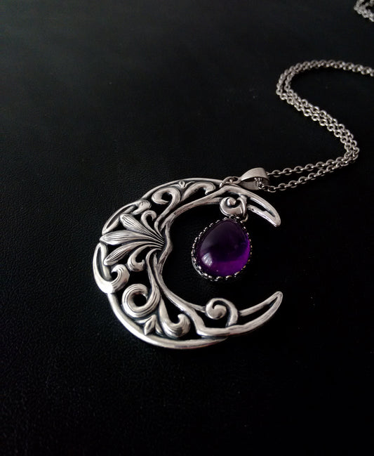Small Crescent Necklace with Amethyst
