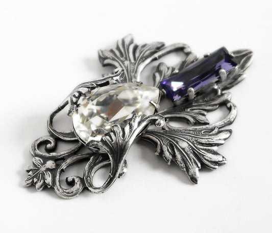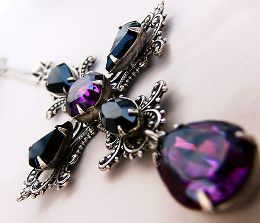 Gothic Cross Necklace with Purple and Black Swarovski Crystals