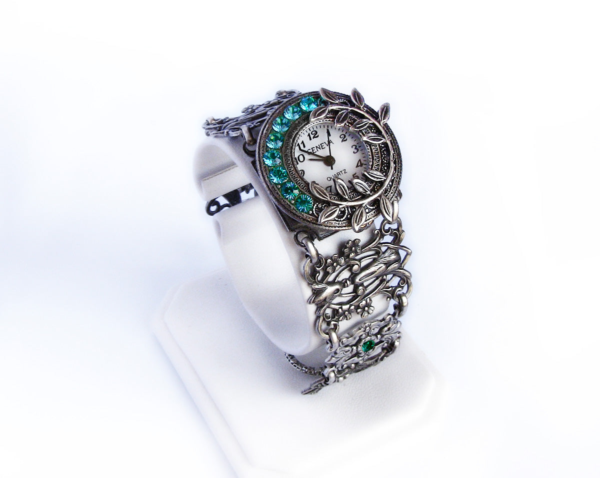 This listing is for a handmade women's silver wrist watch in Gothic Victorian style.